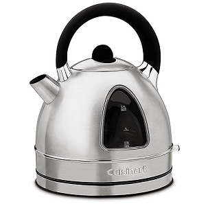 With a concealed heating element and easy one-touch operation, the Cordless Electric Kettle makes hot drinks fast and easy. The convenient extra large window, with water level marks, lets you see when the water is boiling or kettle needs refilling. With classic stainless steel styling and a graceful stay-cool handle, the Cuisinart Cordless Electric Kettle looks sleek on any kitchen countertop. Find more in Cuisinart DK-17 cordless stainless steel electric kettle review.